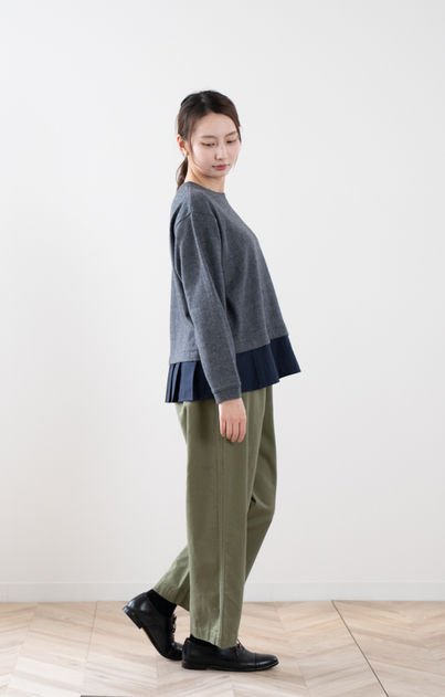 ウール混ニット コンビプルオーバー