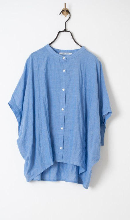無地・チェック・ストライプの先染めシャーリング生地を使用。柔らかな凹凸感が涼しげで、肌に触れる感触も心地よい素材です。ゆったりとしたドルマンスリーブのプルオーバーで、体から離れるシルエットが風通しよく、軽やかな着心地。しわが目立ちにくく、ノーアイロンでサッと着られるのも嬉しいポイントです。ナチュラルな抜け感のあるスタイリングを楽しめる、大人のカジュアルシャツに仕上げました。